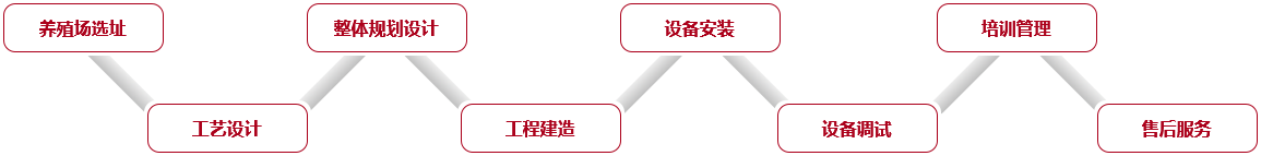 為客戶提供從養殖場選址、規劃設計、工程施工、設備安裝到后期培訓維護等解決方案,周到細致的為客戶打造出具備國際先進水平及高性價比的現代化養殖場, 打造精品“交鑰匙”工程。根據不同區域的自然環境條件及客戶投資需求,因地制宜地采用適宜的生產工藝及流程布局,是養殖場生物安全、生產高效的根本。
